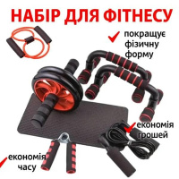 Набір для фітнесу та тренувань 7 в 1 ролик для преса упори стрибкова скакалка еспандери