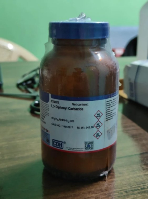 Дифенилкарбазид (1,5-дифенилкарбогидразид) - белые кристаллы, плохо растворим в воде, хорошо - в горячем этаноле, ацетоне, уксусной кислоте.