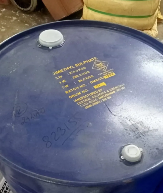 Диметилсульфат - бесцветная жидкость малорастворимая в воде со слабым запахом