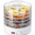 Корпус виконаний з металу та пластику. Кругла форма та прозорі секції дозволяють візуально контролювати процес сушіння без зняття кришки. Піддони встановлюються один на одного, забезпечуючи компактне зберігання та економію місця на кухні.