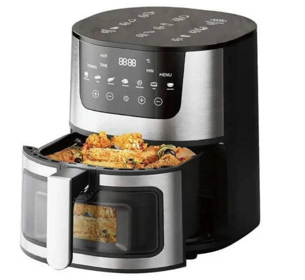 Аерогриль: здоров'я в кожному шматочку, смак без зайвих калорій! Представляємо вам інноваційний кухонний пристрій від відомого бренду Rainberg – фритюрницю без олії, що відкриває нові горизонти для приготування чудових страв з мінімальним вмістом жиру. Цей сучасний пристрій забезпечує не тільки смачні, але й більш здорові результати вашої кулінарної магії. Фритюрниця Rainberg на 8 л ідеально підходить для сімей, які люблять смажену їжу, хочуть скоротити кількість жирів і калорій. Ця модель робить ідеальні хрусткі креветки, неймовірно смачний стейк і чіпси більш здоровою їжею, і все це на 80% менше жиру!Оскільки аерогриль використовує гаряче повітря для приготування їжі, ви можете насолоджуватися приготуванням їжі без олії або додати кілька крапель у страву для додаткової хрусткої скоринки! Використання меншої кількості олії означає, що ви вживаєте здорову їжу, що містить до 80% менше жиру, ніж їжа, приготована в традиційній фритюрниці. Пристрій з використанням низького вмісту жиру потужністю 4200 Втнагрівається до температури всього за 2-3 хвилини і використовує технологію швидкої циркуляції гарячого повітря, щоб готувати їжу набагато швидше за звичайну духовку. Це ідеально підходить для зайнятих домогосподарств і для економії на ваших рахунках за електроенергію теж! Попередньо встановлені функції спрощують приготування улюблених смажених страв;