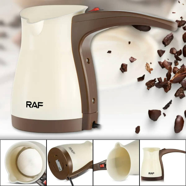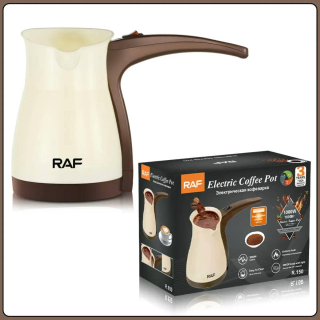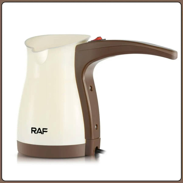 Електрична кавоварка турка RAF R.151 призначена для швидкого та зручного приготування ароматної кави в домашніх умовах. Потужність 1000 Вт забезпечує рівномірний нагрів і скорочує час приготування напою. Об'єм 500 мл дозволяє за один цикл приготувати від 4 до 6 чашок кави, що зручно як для індивідуального використання, так і для невеликої компанії. Кавоварка оснащена закритим нагрівальним елементом, механічним управлінням та кнопкою включення з підсвіткою для наочного контролю роботи. Вбудований захист від перегріву підвищує безпеку експлуатації та продовжує термін служби пристрою. Компактні розміри дозволяють легко розмістити турку на кухні або взяти з собою у подорож, а гладкі поверхні спрощують очищення після використання. Переваги: