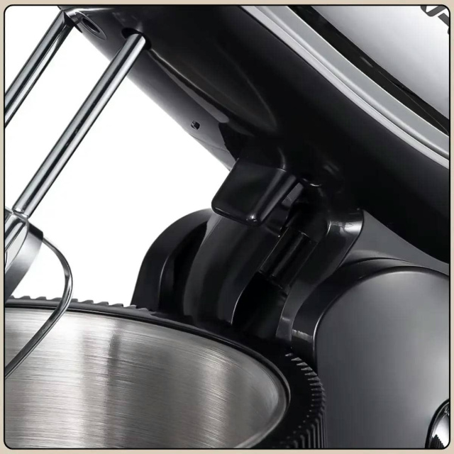 Стаціонарний міксер призначений для приготування кремів, соусів, тіста та інших кулінарних заготовокв домашніх умовах. Прилад може використовуватися як у стаціонарному режимі з чашею, так і як ручний міксер, що робить його універсальним помічником на кухні. Чаша об'ємом 2,5 літра з нержавіючої сталі підходить для щоденного використання та легко очищується після роботи. Потужність 1000 Вт забезпечує стабільну роботу з різними інгредієнтами,а три режими швидкості дозволяють вибрати оптимальну інтенсивність змішування. До комплекту входять віночки для збивання та гачки для замішування тіста, що розширює можливості використання приладу. Корпус виконаний з нержавіючої сталі та міцного пластику, відрізняється надійністю та простотою догляду. Переваги: