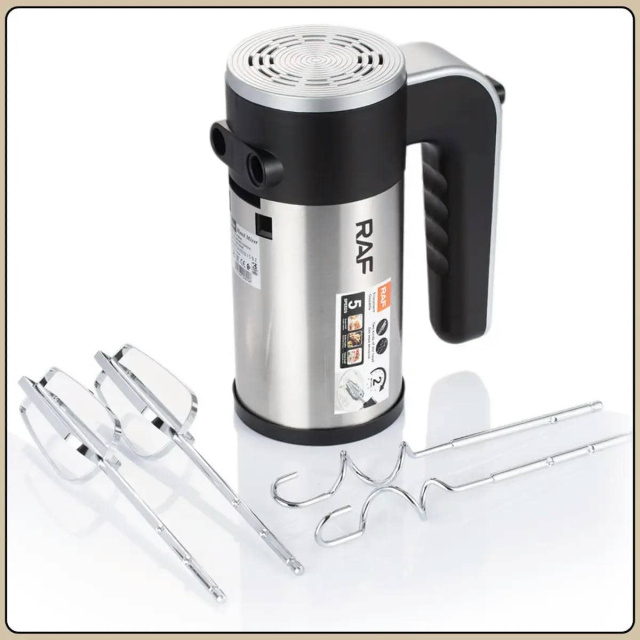 Електричний ручний міксер з регулюванням швидкості та насадками RAF R.6639 800W