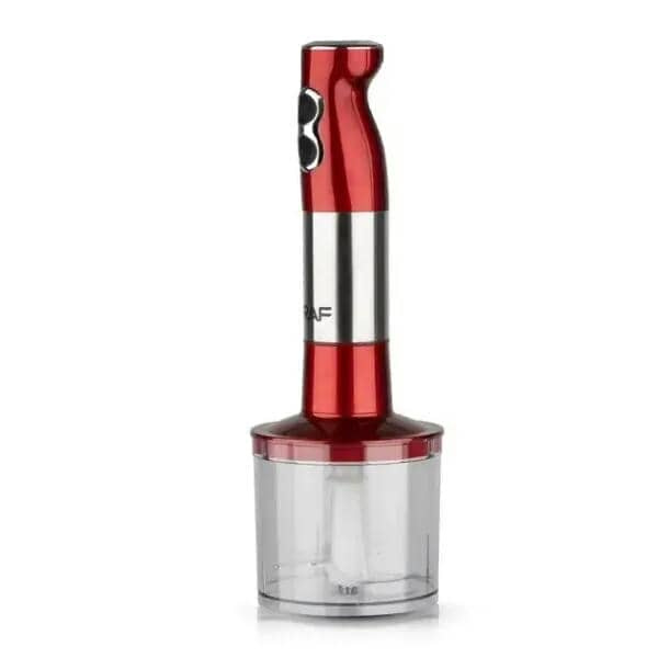- Блендер RAF належить до нестандартного (занурювального) типу. Під час роботи Ви занурюєте робочу частину блендера (ніжку блендера з ножем або віночок) у ємність з продуктами. Він портативний і легко підлягає маніпуляціям. Занурювальний блендер більш мініатюрний і легший за ручний міксер, а також функціональніший за свої стаціонарні аналоги.