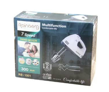 Міксер Ручний Rainberg RB-1001Опис: За допомогою ручного міксера Rainberg RB-1001 Ви з легкістю порадуєте всю Вашу родину − замісите тісто, приготуєте найсмачніші соуси або збаєте яйця. Отримати суміші різної консистенції ви зможете завдяки 7-ми швидкісним режимам. Повітряне або більш густе тісто вам допоможуть замісити дві насадки для тіста. А два віночки для збивання дозволять швидко і якісно збити потрібний вам продукт. Основні Характеристики: