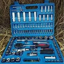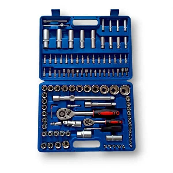 Професійний набір інструментів Zhongxin Tools 108 предметів, у пластиковому кейсі Комплектується стандартними 6-гранними головками та насадками. Всі насадки виготовлені з високоміцної хром-ванадієвої сталі. Забезпечує найкращі умови для прикладання робочого зусилля при роботі з зовнішніми робочими профілями. Комплектуючі елементи дозволяють використовувати набір при виконанні різних видів робіт. Постачається в пластмасовому протиударному кейсі з пластиковими засувками. Комплектація: