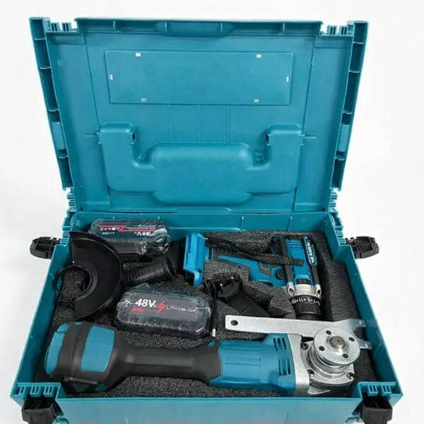 Набір акумуляторного інструменту 2в1 Jitpex — це універсальне рішення для будівельних, монтажних і побутових робіт. У комплект входить акумуляторний шурупокрут і кутова шліфмашина (болгарка), що працюють від спільної акумуляторної системи 48V, що забезпечує зручність і мобільність без прив'язки до мережі.