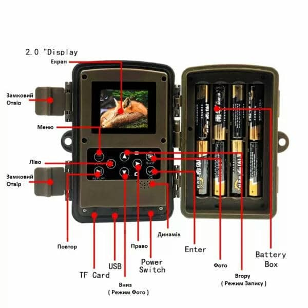 - Фотопастка має дисплей, завдяки якому можна переглядати відзнятий матеріал, не відходячи від місця встановлення.