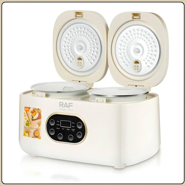 Мультиварка з подвійною чашею RAF R.5419 призначена для одночасного приготування двох різних стравбез змішування смаків. Дві окремі чаші об'ємом по 1 літру дозволяють зручно готувати гарніри, основні страви, каші або рис, економлячи час та електроенергію. Сенсорне управління з цифровим дисплеєм робить використання простим і наглядним, а компактні розміри дозволяють розмістити пристрій навіть на невеликій кухні. Антипригарне покриття чаш полегшує догляд і запобігає пригоранню продуктів під час готування.Мультиварка оснащена 14 автоматичними програмами, що робить її універсальним рішенням для повсякденного використання. Бежевий пластиковий корпус виглядає акуратно і легко вписується в інтер'єр сучасної кухні. Переваги: