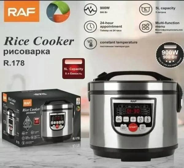 Рисоварка RAF R.178 призначена для приготування рису, овочів, риби. Потужності та обсягу достатньо для якісного приготування рису на будь-який смак. Просте і зрозуміле управління не викличе незручностей. Одною з істотних переваг рисоварки RAF R.178 є теплоізольована ручка та зручне меню управління.