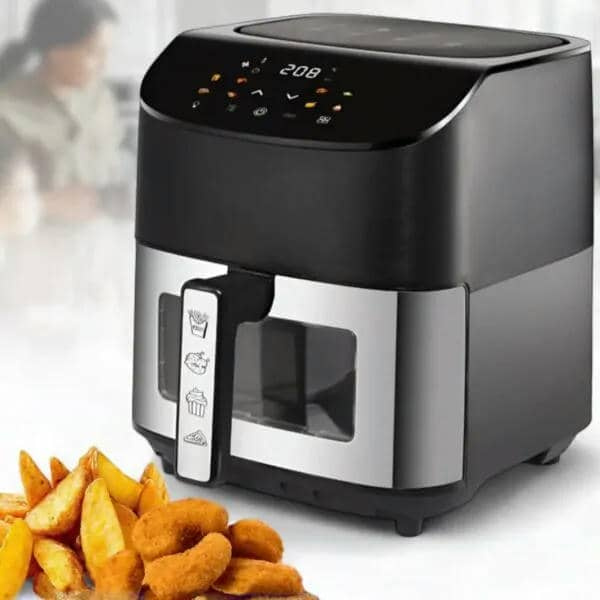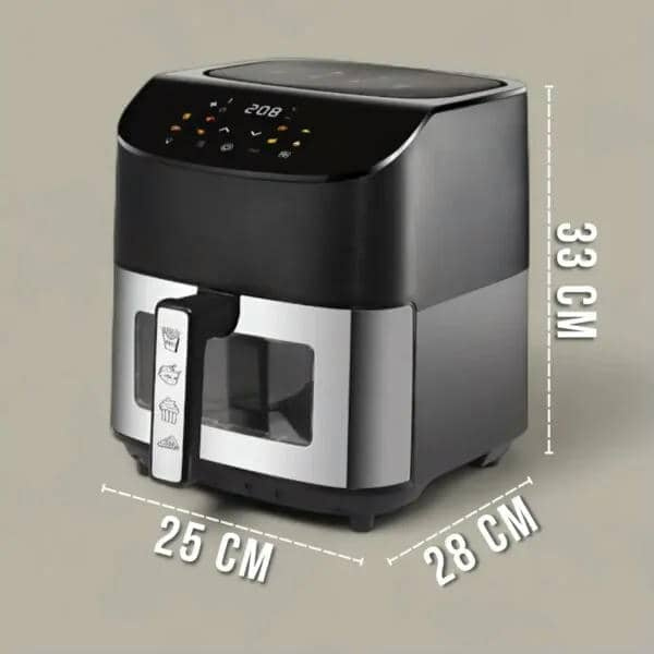 Аерофритюрниця Air Fryer 4200Вт 10л BITEK BT-9501— це сучасний кухонний прилад, який дозволяє готувати смачні страви з мінімальною кількістю олії або взагалі без неї. Завдяки циркуляції гарячого повітря під кутом 360° продукти рівномірно обсмажуються, залишаються соковитими всередині та набувають золотистої хрусткої скоринки ззовні. За допомогою аерофритюрниці можна смажити, запікати, розігрівати та розморожувати м'ясо, рибу, овочі та картоплю, зберігаючи їх харчові властивості та смак. Прилад оснащений сенсорною панеллю управлінняз шістьма автоматичними програмами, а також можливістю вручну регулювати температуру від 80 до 200 °C та час до 4 годин. Металевий ТЕН забезпечує рівномірний нагрів, а вбудоване вікно та підсвічування дозволяють спостерігати за процесом приготування, не відкриваючи чашу. Переваги: