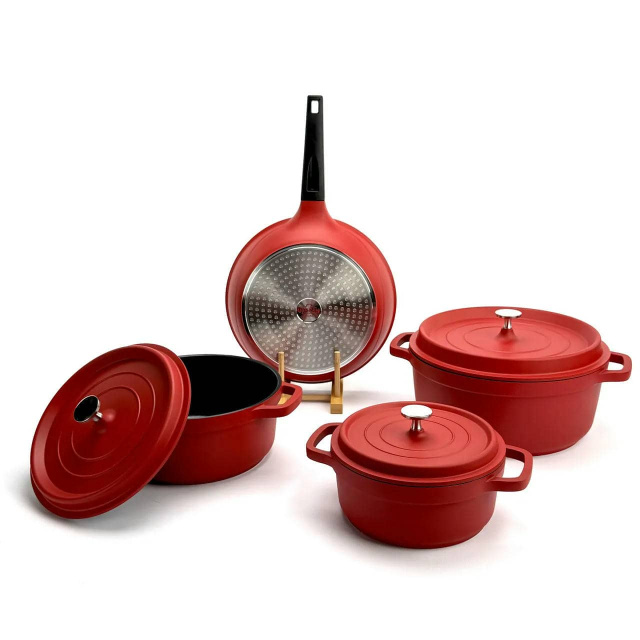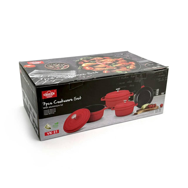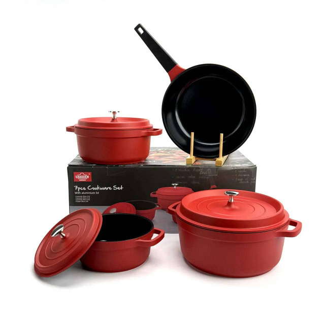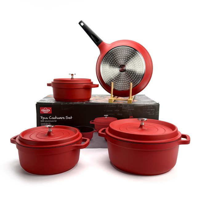 Набор посуды UAKEEN VK-21, 7 предметов из литого алюминия. Красный матовый (VK-21), Івано-Франківськ