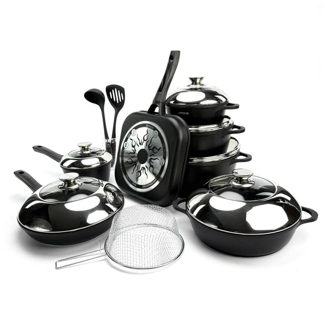 Набор посуды Arshia AR-14, 14 предметов из литого алюминия. Черный (AR-14), Івано-Франківськ