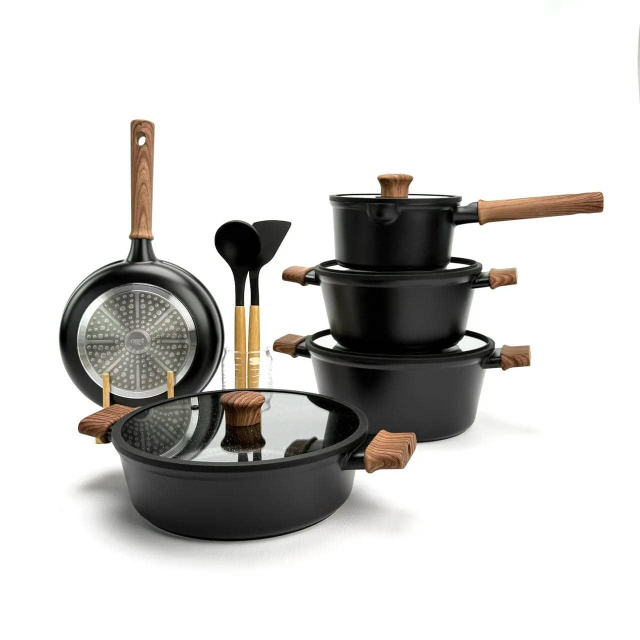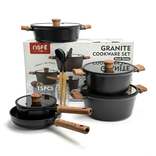 Набор посуды OSFE Musk Series OE-MSK015, 15 предметов из алюминия. Черный (OE-MSK015), Івано-Франківськ