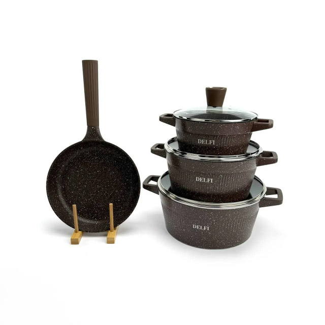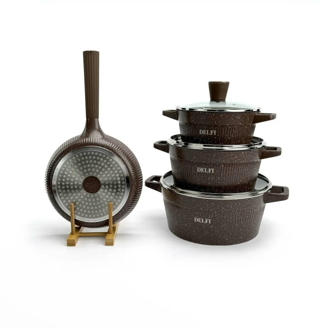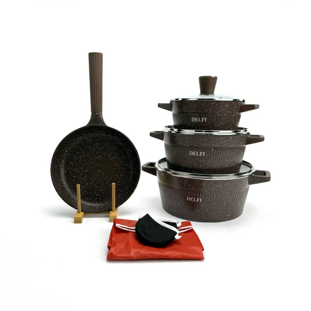 Набор посуды Delfi YD-10, 10 предметов из литого алюминия. Коричневый (YD-10), Івано-Франківськ