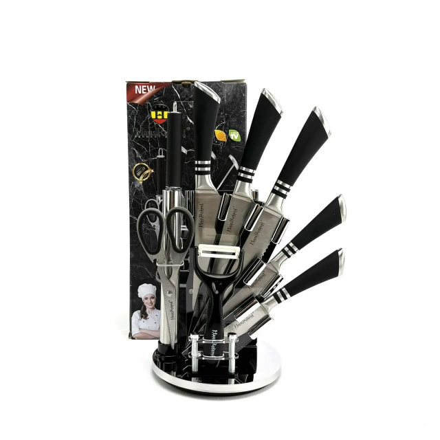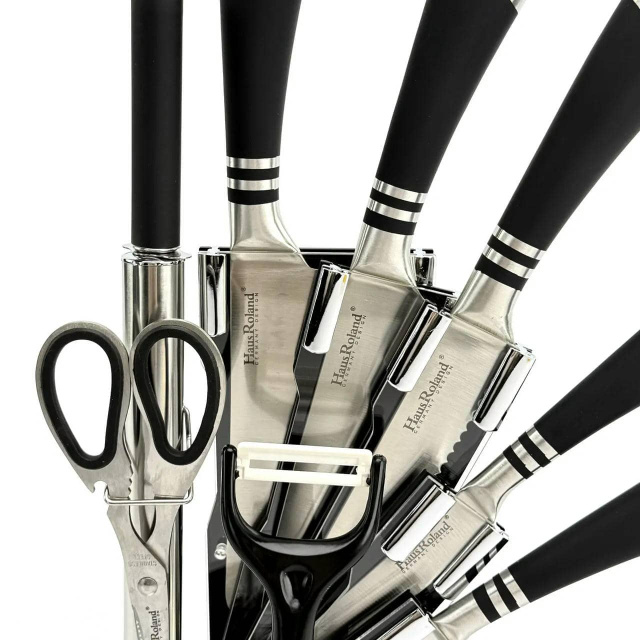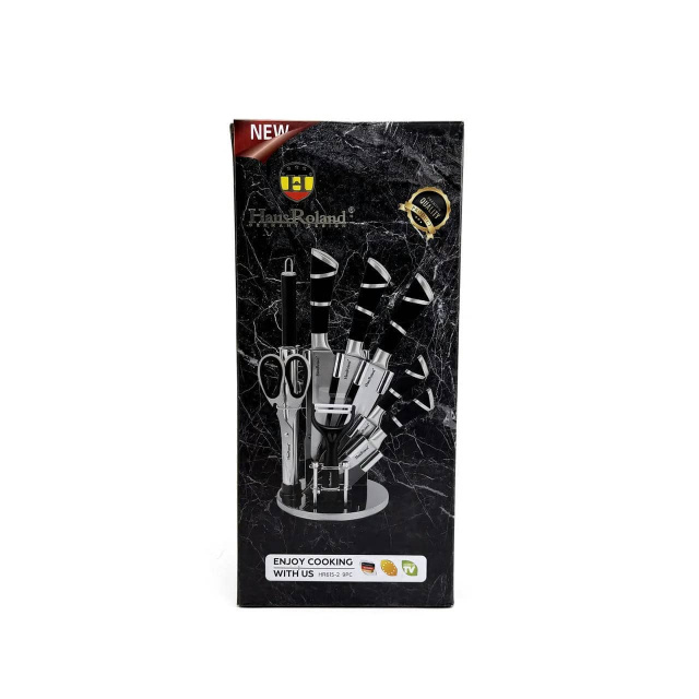 Набір ножів Haus Roland HR615-2, 9 предметів на обертаній підставці. Срібний (HR615-2), Івано-Франківськ