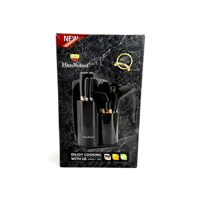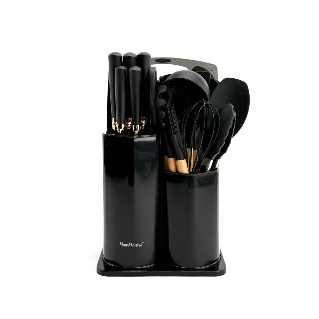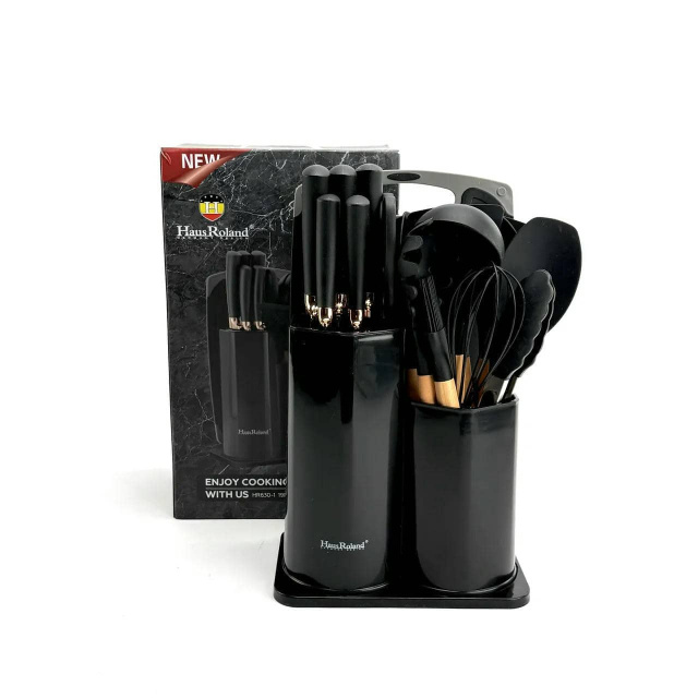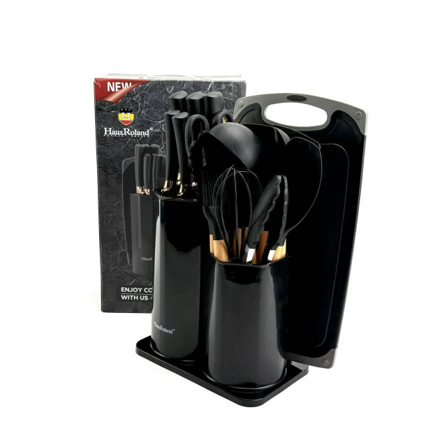 Великий кухонний набір Haus Roland HR630-1, 19 предметів з дошкою та ножицями. Чорний (HR630-1), Івано-Франківськ