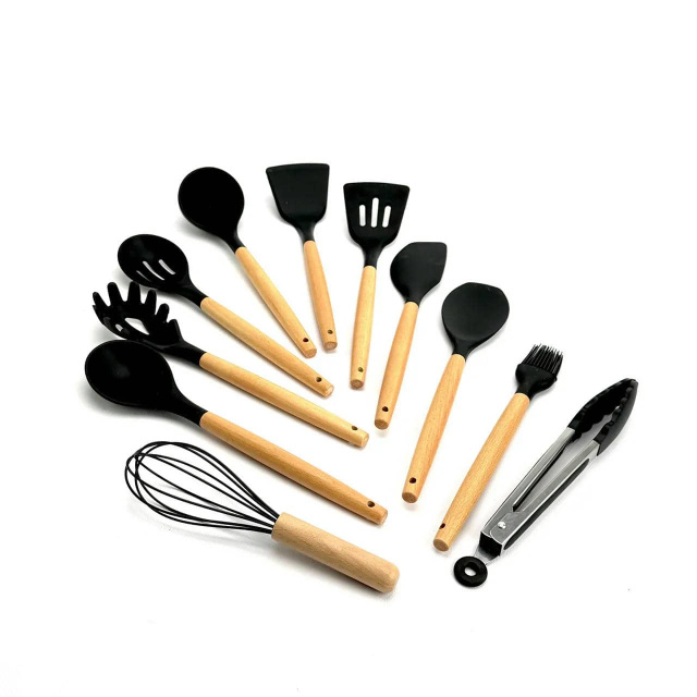 - Кухонне приладдя (10 шт.): половник, лопатка, лопатка з прорізами, ложка для спагеті, венчик, щипці, кулінарна кисть, ложка-шумівка, поварська ложка, лопатка для тіста.