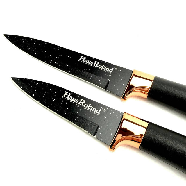 - Матеріал ручок (ножі): PP + кільце ABS із золотим напиленням