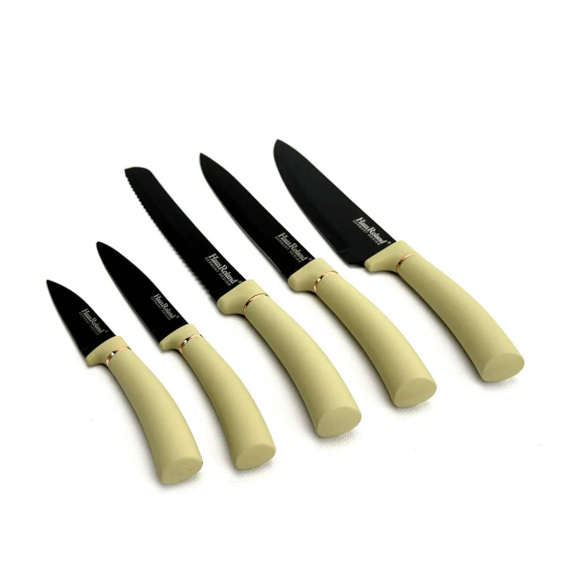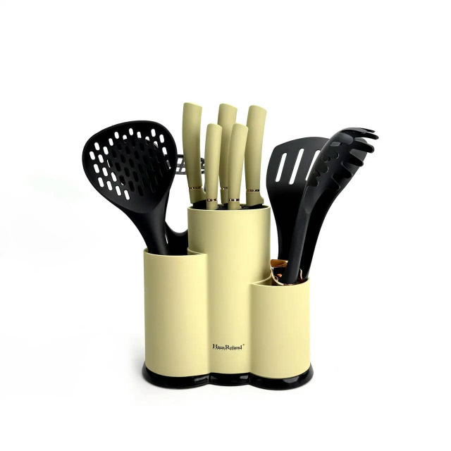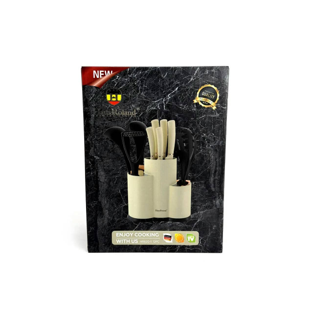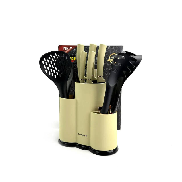 Набір ножів та кухонних приладдя Haus Roland HR620-1, 12 предметів у підставці. Бежево-чорний (HR620-1), Івано-Франківськ