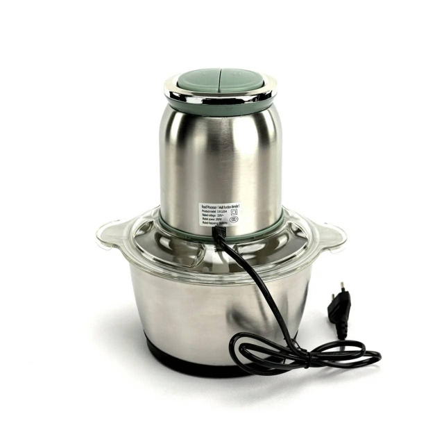 Подрібнювач DENX DX3204 — універсальний кухонний прилад для швидкого та ефективного подрібнення м'яса, овочів, фруктів, горіхів та інших продуктів. Оснащений великою чашею обсягом 2 л, потужним двигуном та кількома режимами роботи, що робить його незамінним помічником на кухні для приготування фаршу, пюре, соусів та інших страв. Особливості • Велика чаша 2 л Забезпечує достатній обсяг для подрібнення великих порцій продуктів за один цикл. • Потужний двигун 250 Вт Гарантує високу швидкість та ефективність роботи з різними продуктами. • Дві швидкості Дозволяють оптимізувати процес подрібнення залежно від типу продуктів. • Імпульсний режим Дозволяє контролювати ступінь подрібнення для досягнення бажаної текстури. • Ножі з нержавіючої сталі Гострі та износостійкі лезо забезпечують рівномірне та ефективне подрібнення. • Захист від перегріву Забезпечує безпечну експлуатацію та продовжує термін служби приладу. • Прогумовані ножки Забезпечують стійкість пристрою під час роботи. Характеристики • Виробник: DENX • Модель: DX3204 • Тип: Подрібнювач • Потужність: 250 Вт • Кількість швидкостей: 2 • Обсяг чаші: 2 л (2000 мл) • Матеріал корпусу: Нержавіюча сталь • Матеріал чаші: Скло • Імпульсний режим: Так • Захист від перегріву: Так • Прогумовані ножки: Так • Колір: Срібний ```
