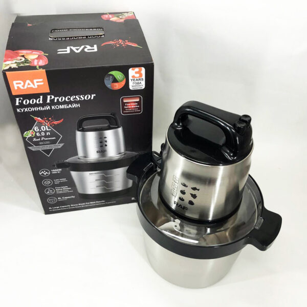 Кухонний подрібнювач RAF R-7008 створений для тих, хто цінує швидкість і якість у приготуванні страв. Завдяки потужності 1600 Вт і місткій чаші об’ємом 6000 мл, цей апарат легко справляється з великими об’ємами продуктів, забезпечуючи рівномірне подрібнення. Дві регульовані швидкості дозволяють налаштувати пристрій під різні завдання, від тонкої нарізки до грубого подрібнення. Корпус із пластику та нержавної сталі не лише довговічний, але й простий у догляді, а стійка до корозії чаша з нержавної сталі гарантує надійність та гігієнічність використання. RAF R-7008 — відмінний інструмент для ефективної роботи на кухні.