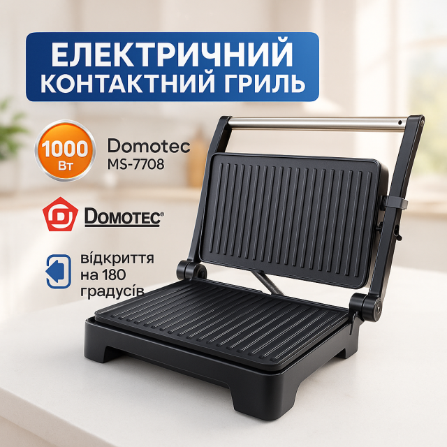 Гриль електричний Domotec MS-7708 притискний контактний з антипригарним гранітним покриттям 1000 W