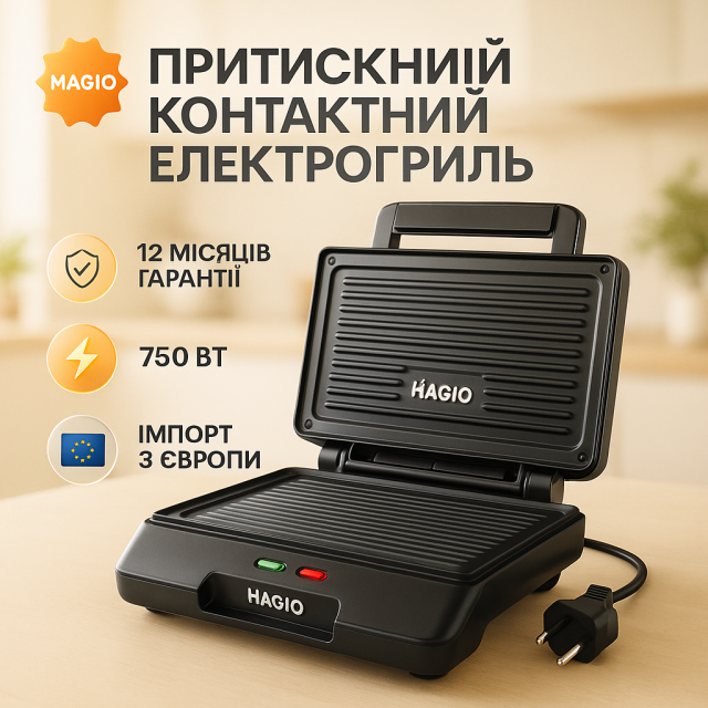 Бутербродниця MAGIO MG-378 750 Вт з антипригарним покриттям, Настільний гриль електричний-притискний, Івано-Франківськ