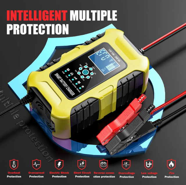 7-етапний зарядний пристрій для акумуляторів підходить для більшості типів свинцевих акумуляторів, включаючи кальцієві, гелеві, A GM, LiFePo4, вологі, свинцево-кислотні тощо. Вбудований багатоступеневий захист допомагає відновити розряджені та сульфатовані акумулятори, що продовжує термін їхньої служби.
